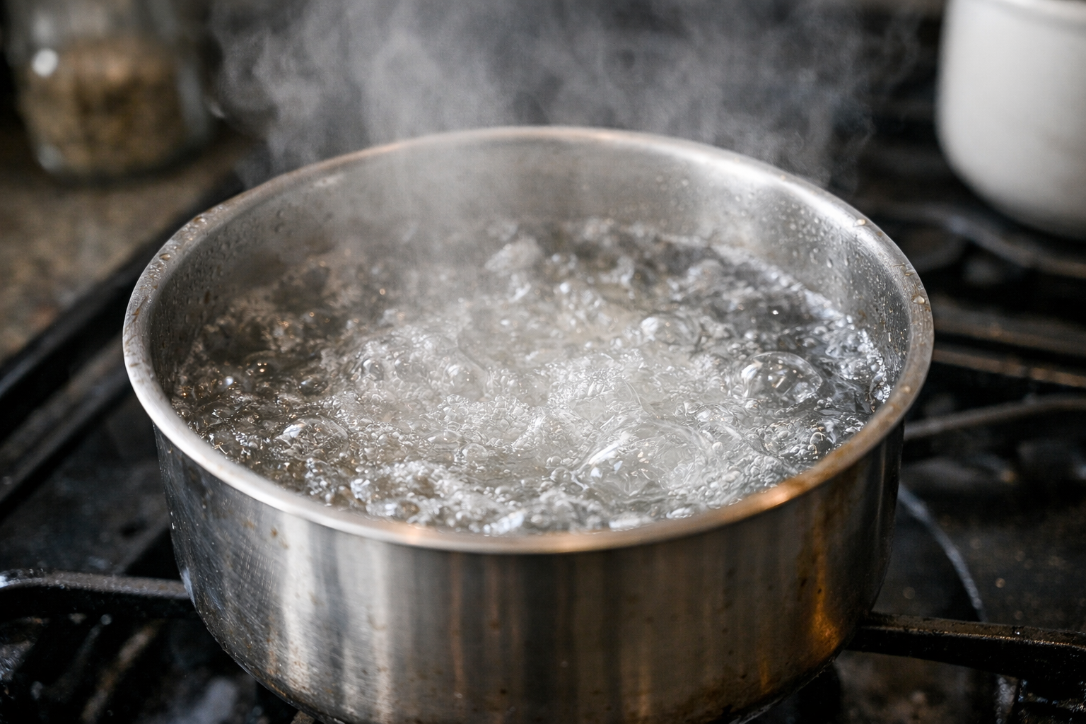 • Kaada puhdasta vettä leveään kattilaan. • Lisää tehokas luonnollinen neutralointiaine – pöytäetikka. • Kuumenna seos miedolla lämmöllä ja anna kiehua liedellä.