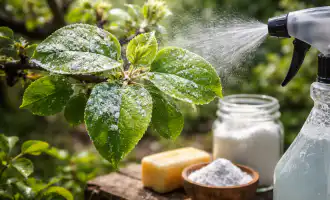 Salainen vivahde: jotta saippualiuos pysyy oksilla pidempään eikä runsas aamukaste huuhtoudu pois, lisää siihen pari ruokalusikallista seulottua puutuhkaa juuri ennen ruiskutuksen aloittamista.