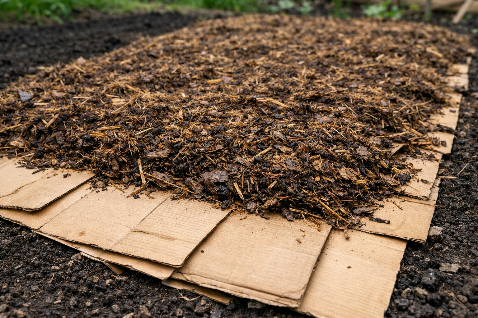 Aseta paksu aaltopahvilevy suoraan viime vuoden ruohon päälle.