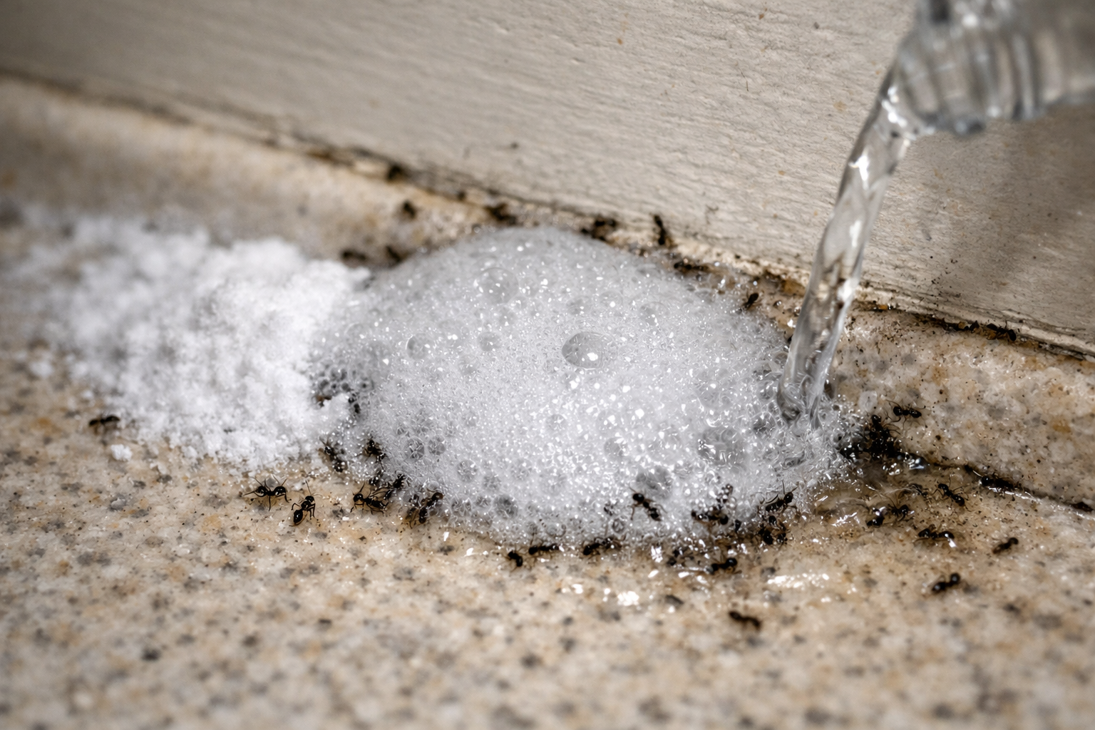 Kun alkali ja happo kohtaavat, tapahtuu voimakas kemiallinen reaktio, joka vapauttaa hiilidioksidia. Hyönteisille tästä suhisevasta seoksesta tulee ylitsepääsemätön este. Ruokasooda tuhoaa tuholaisten ulkokuoren ja pöytäetikka sotkee heidän navigointiasetukset.