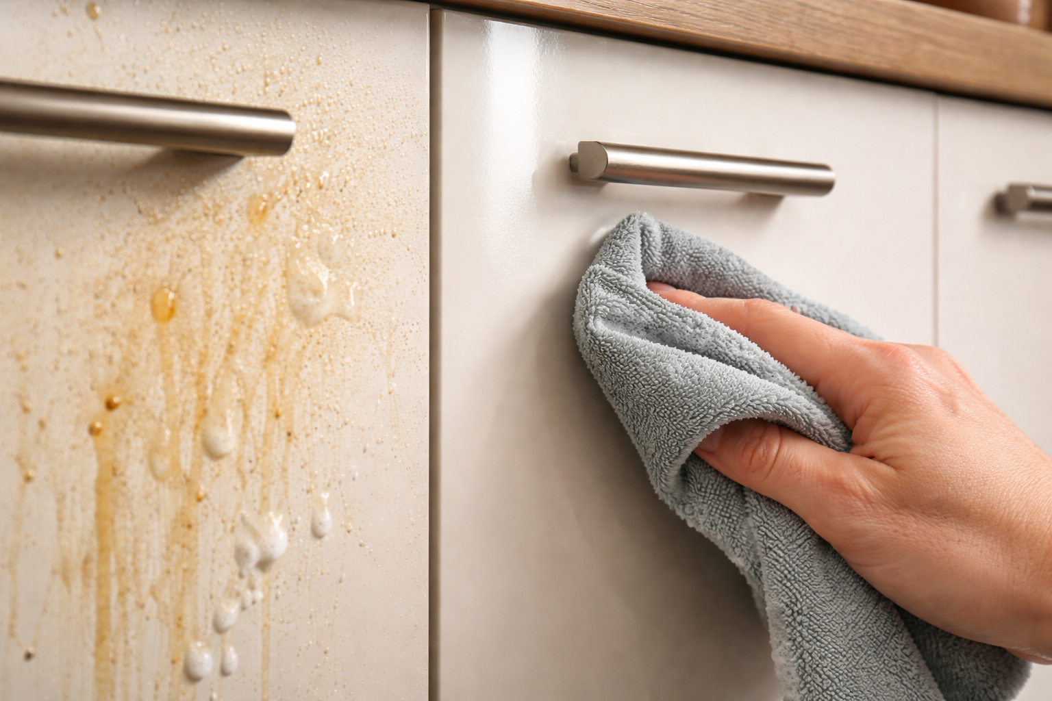 MDF-julkisivut peittyvät nopeasti sormenjäljillä ja tahmealla rasvalla, ja virheellinen puhdistus pilaa niiden ulkonäön pysyvästi. Näytän sinulle turvallisen menetelmän, joka palauttaa kalusteet alkuperäiseen kiiltoonsa ilman aggressiivisia kemikaaleja ja ylimääräistä vaivaa.