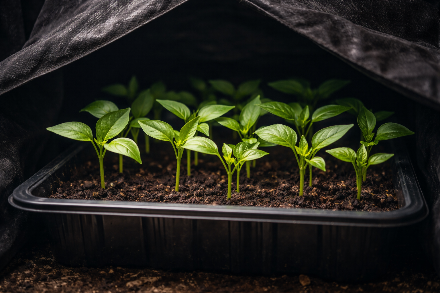 Luonnollisissa olosuhteissa siemenet löytyvät syvältä maaperästä, jossa auringonvalo ei tunkeudu. Elinkaarinsa aloittamiseksi ne tarvitsevat vain kosteutta ja asianmukaista lämpötilajärjestelmä. Valo on tässä vaiheessa enemmän stressitekijä, joka kertoo siemenen olevan pinnalla, jossa se voi nopeasti kuivua. Luomalla keinotekoista pimeyttä varmistamme täydellisen kasvihuoneilmiö ilman kuivumisvaaraa.