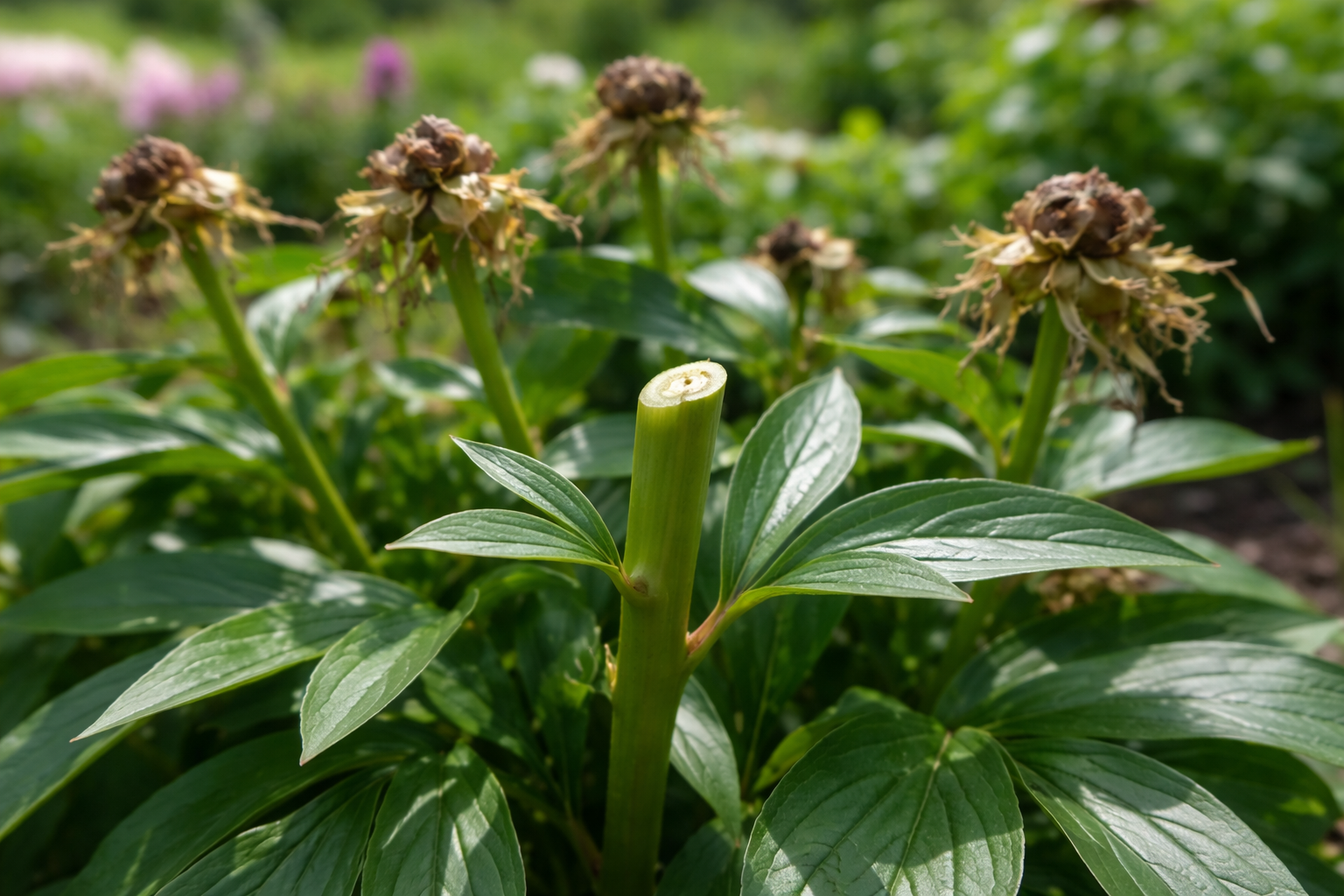 Kuinka poistaa haalistuneet päät oikein • Valmistele terävä ja puhdas puutarhaleikkuri • Etsi ensimmäinen iso terve lehti kuihtyneen silmun alta • Tee tasainen viisto leikkaus hieman tämän lehden yläpuolelle • Kerää kaikki leikatut osat ja vie ne kukkapenkin ulkopuolelle