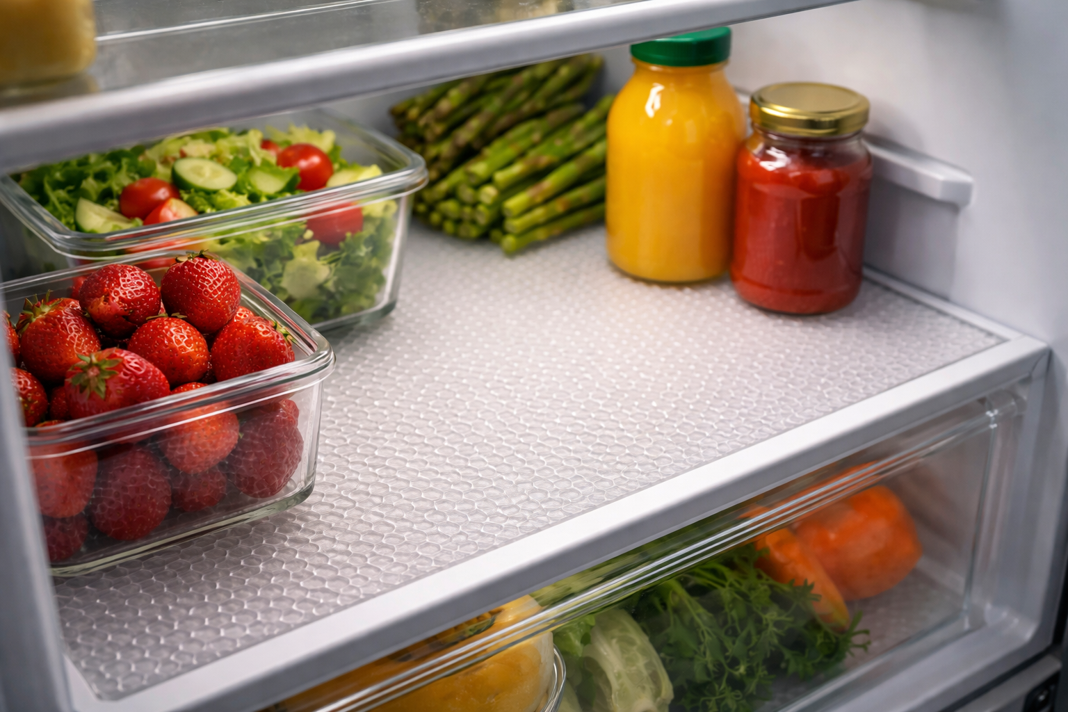 ”Salainen vivahde: valitse aina hunajakennomainen matto. Tämä varmistaa paremman ilmankierron ruoan alla, mikä on kriittistä vihannesten ja marjojen varastoinnissa alalaatikoihin”, – asiantuntijan henkilökohtainen neuvo.