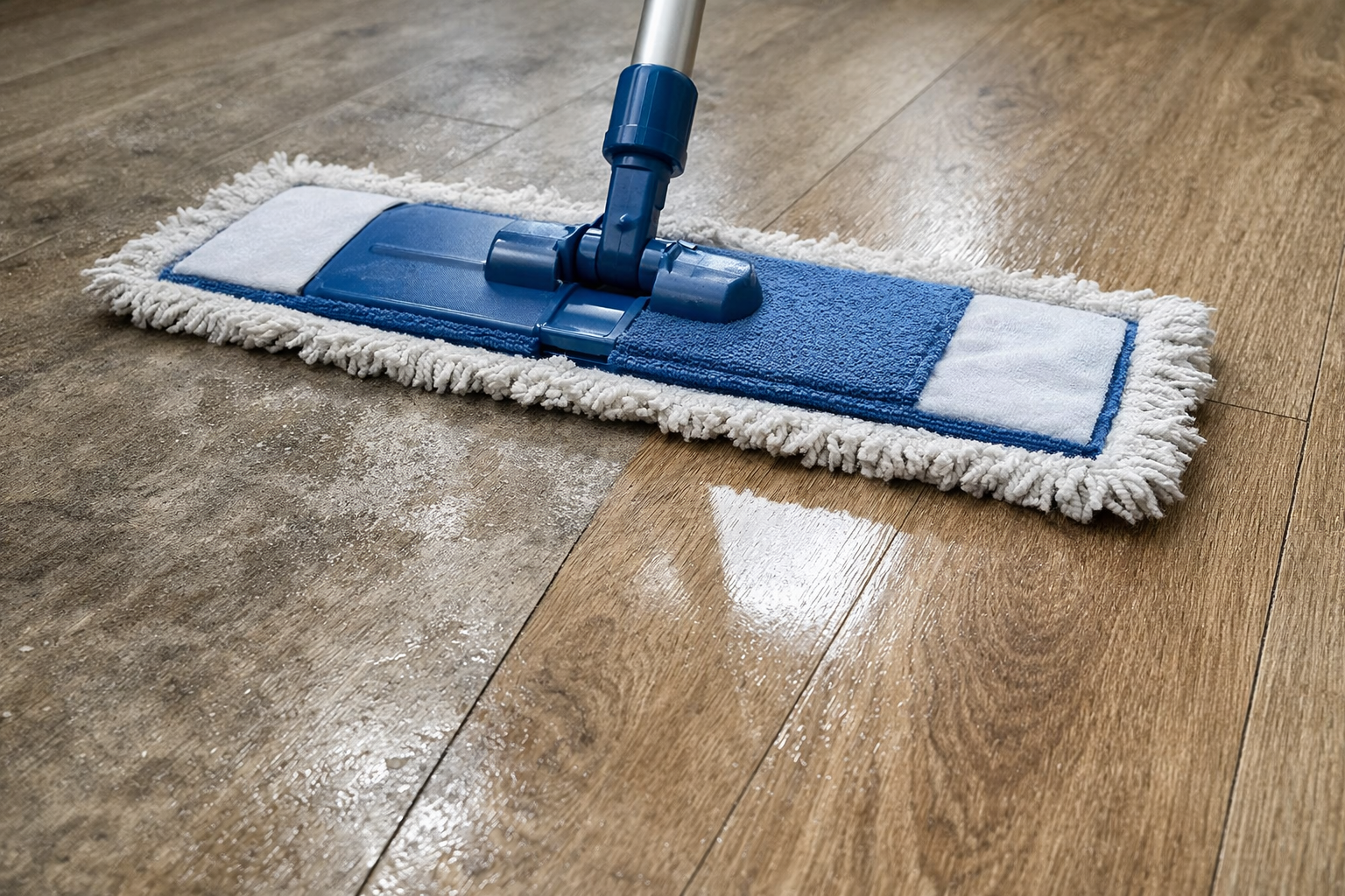 Levitä kevyt kosteussumu sisäänrakennetulla suihkeella juuri ennen mopin siirtämistä.