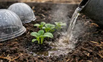 ”Heikko vaaleanpunainen kaliumpermanganaattiliuos desinfioi tehokkaasti maaperän kastelupaikoilla ja suojaa nuoria juuria vaurioilta.”