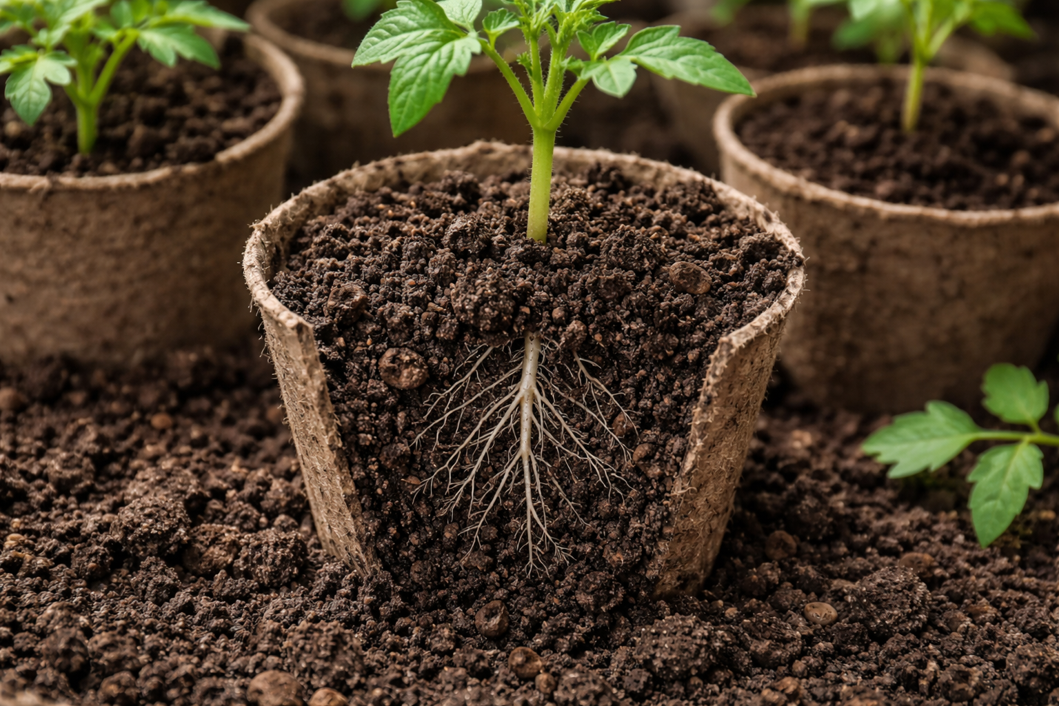 Oikeaa kehitystä varten juurijärjestelmä tarvitsee jatkuvaa stimulaatiota. Pörröisessä kaupasta ostetussa turpeessa juuret kasvavat liian nopeasti ja jäävät ohuiksi ja hauraiksi. Kun tällaiset kasvit altistuvat todellisille ulko-olosuhteille, ne kokevat vakavaa stressiä.
