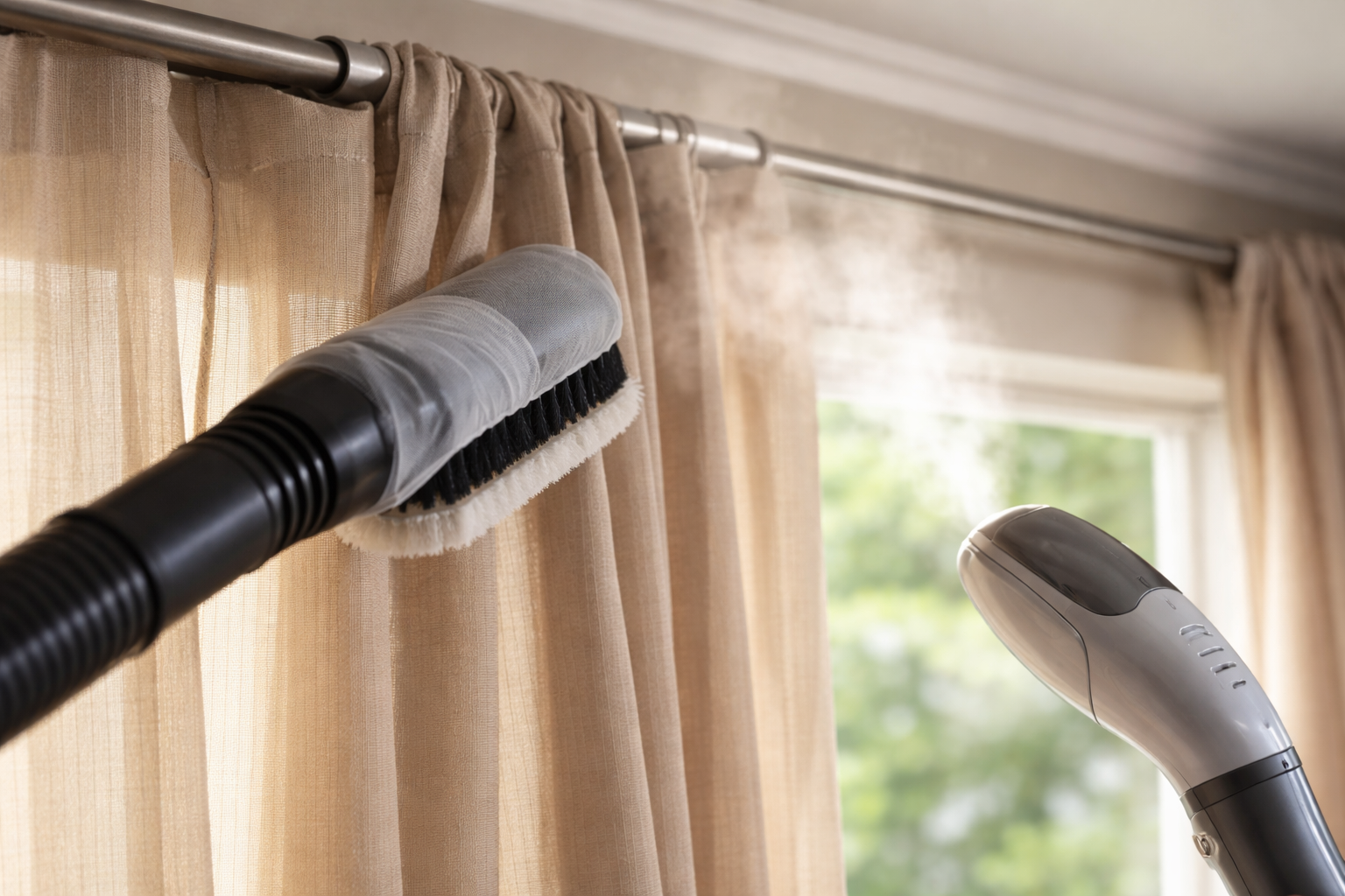 Kiinnitä erityistä huomiota syviin taitteisiin, verhoihin ja reunuksen yläreunaan, jonne suurin osa pölystä kerääntyy.