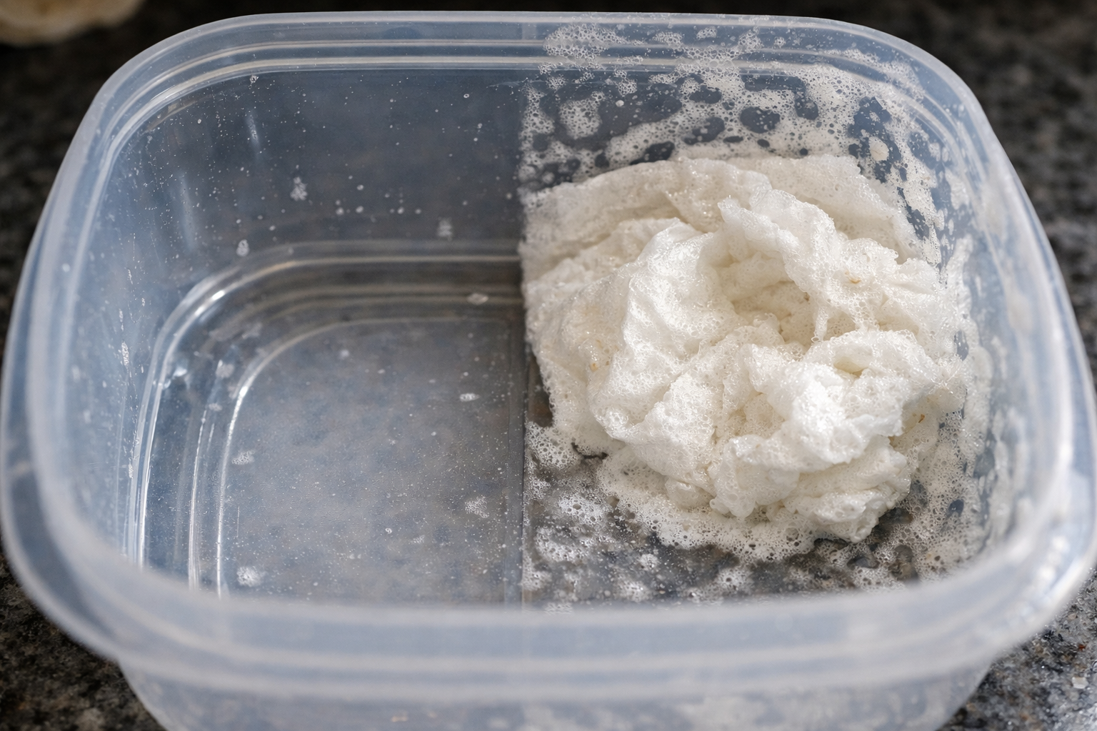 Pääsalaisuus ei piile vaahdon määrässä, vaan märän paperin voimakkaan kitkan luomisessa, joka kirjaimellisesti lyö rasva- ja aromimolekyylit muovin mikrohuokosista.