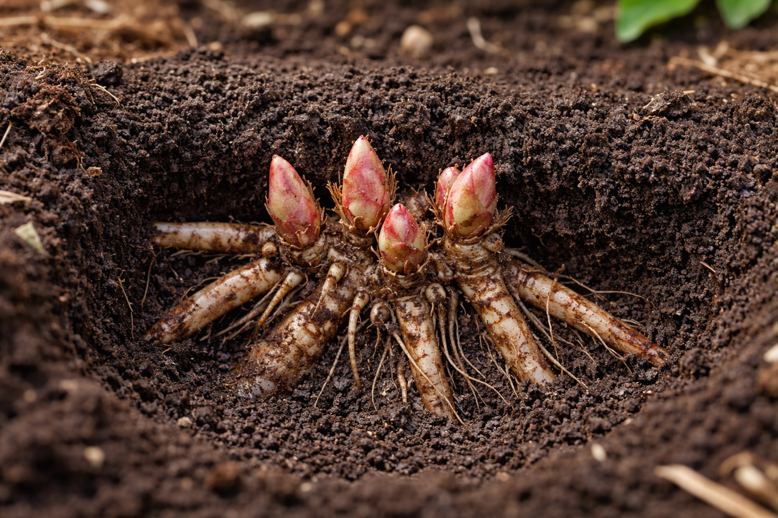 Pionit ovat erittäin herkkiä sille, kuinka syvälle ne ovat piilossa maassa. silmujen uusiminen. Tämä on yleisin syy kukkien puutteeseen, jonka puutarhurit unohtavat. Kasvi voi näyttää täysin terveeltä, kasvattaa ylellistä vihreää massaa, mutta kieltäytyä itsepintaisesti muodostamasta silmuja.