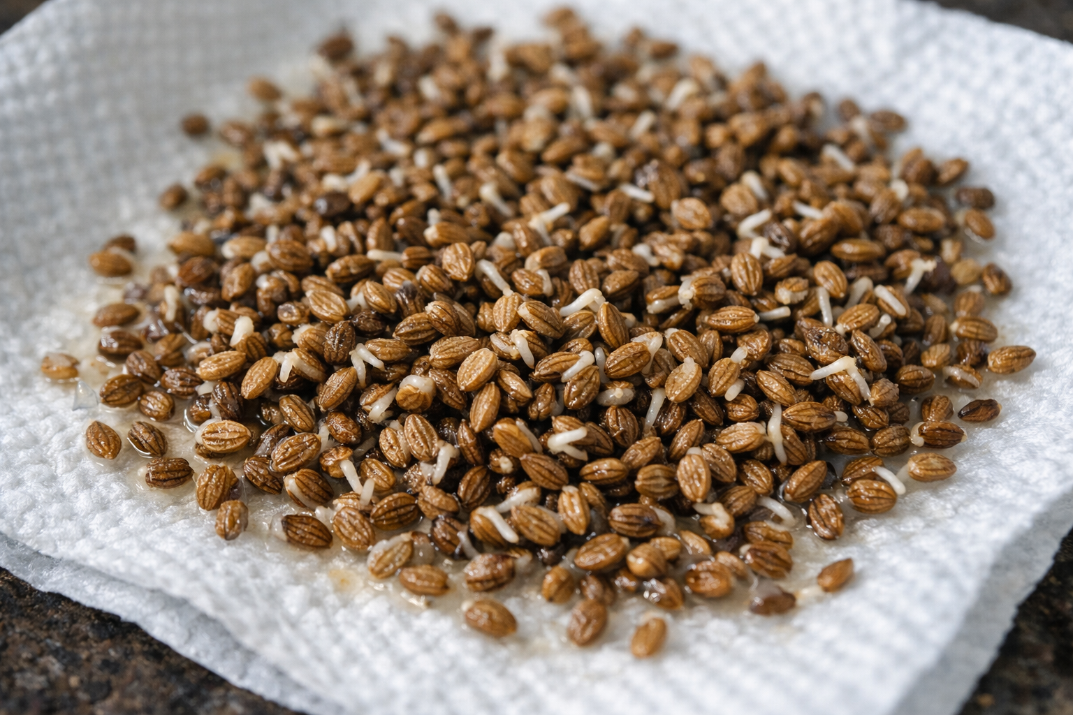 Kevyt kuivaus lautasliinalla vesitoimenpiteiden jälkeen palauttaa siementen juoksevuuden.