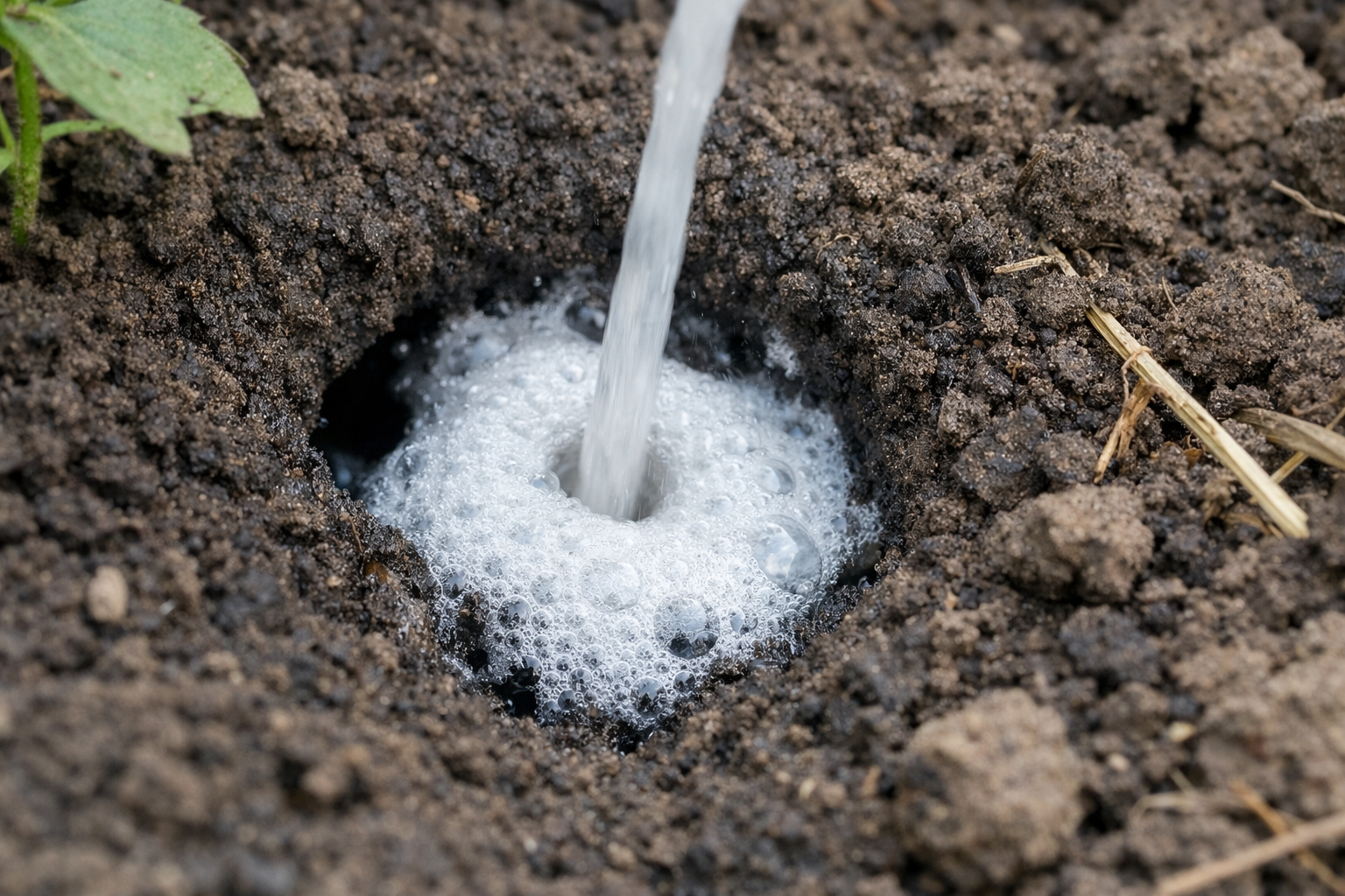 Huolellinen, kohdennettu infuusio suoraan reikään, viljeltyjen kasvien juuret pysyvät täysin turvassa.