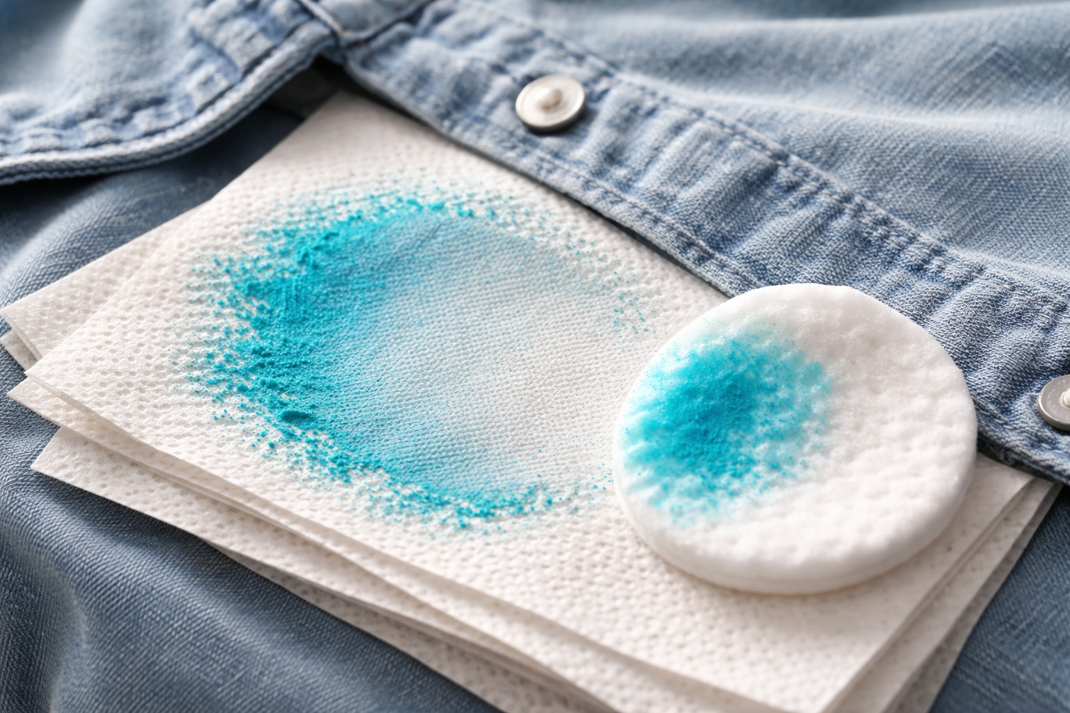 Salainen vivahde: älä koskaan hiero tuoretta likaa aggressiivisilla harjoilla, muuten väriainehiukkaset imeytyvät tiiviisti lankojen rakenteeseen.