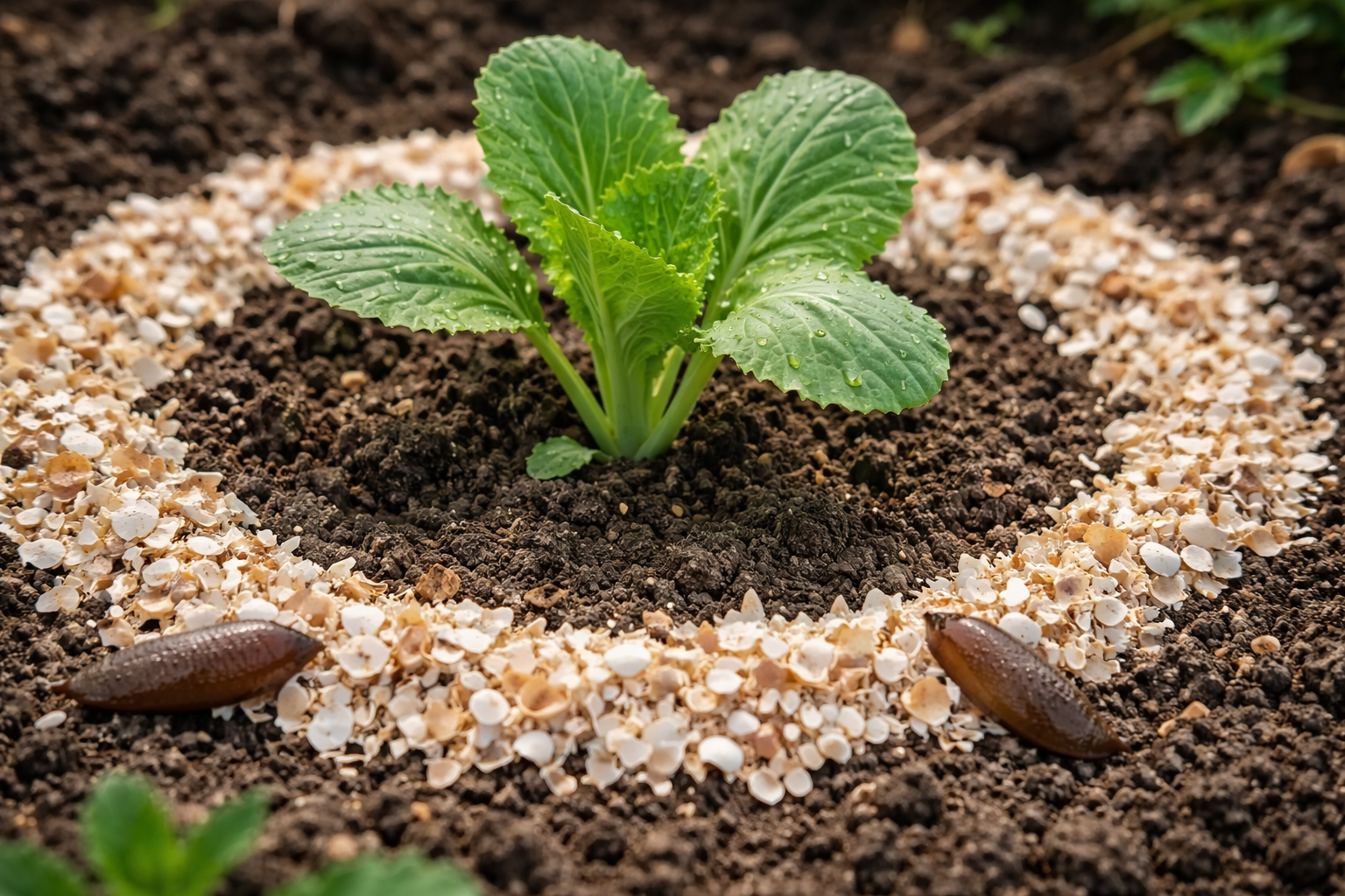 ”Salainen vinkki: ripottele suojakerros paitsi itse kasvin ympärille, myös koko pekin kehän ympärille luodaksesi kaksinkertaisen suojan tuholaisten vaeltamista vastaan.”