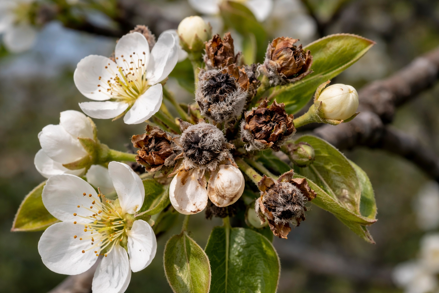 Miksi päärynän kukat muuttuvat yhtäkkiä ruskeiksi ja kuivuvat?