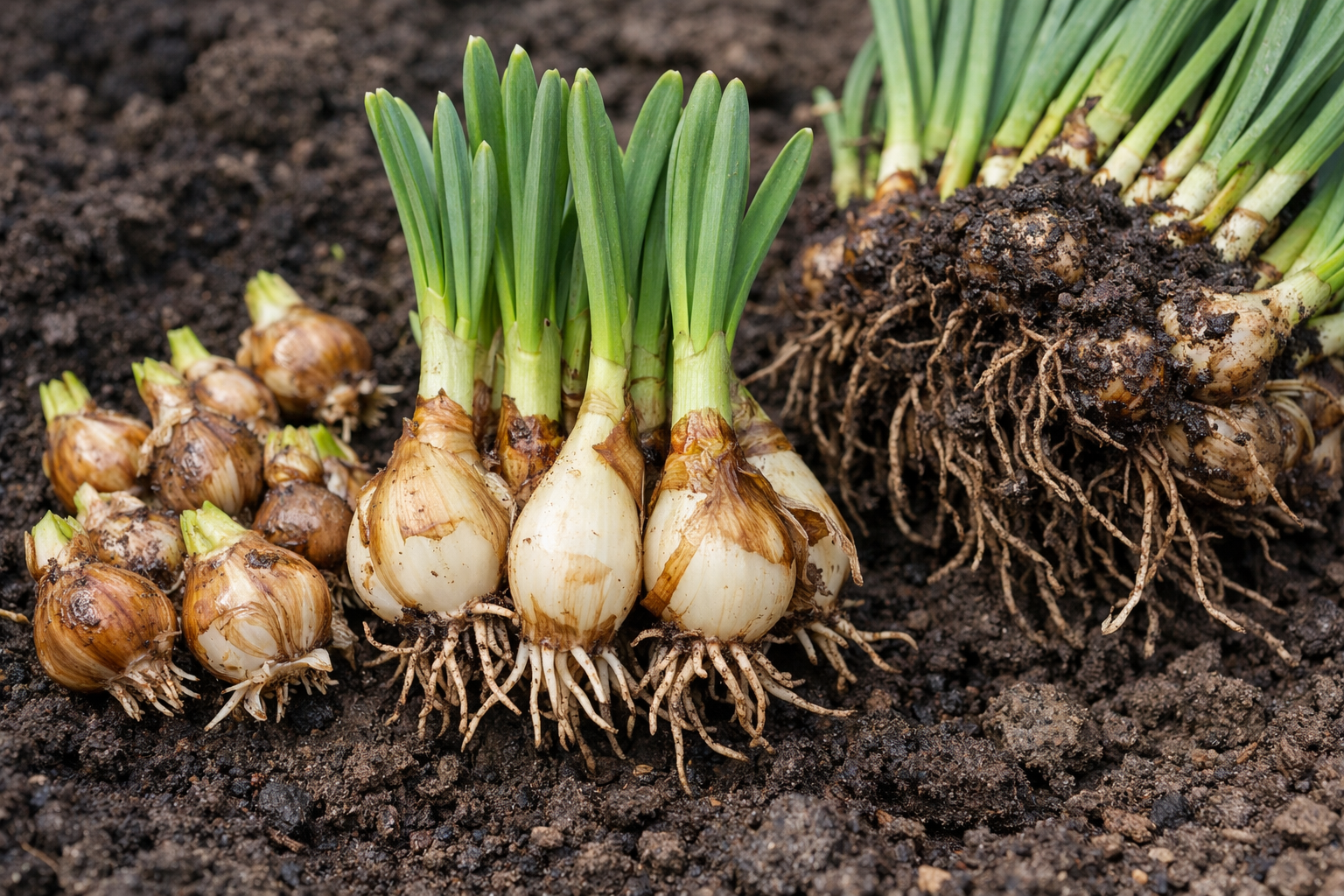 Korjata maataloustekniikka vaatii huomiota yksityiskohtiin kasvien maasta poistamisen jälkeen. Kaivamisen jälkeen on tärkeää suorittaa huolellinen lajittelu. Vain suuret, tiheät sipulit, joiden halkaisija on yli neljä senttimetriä, takaavat kukinnan ensi kaudella. Pieni ”vauva” on parempi istuttaa erilliseen sänkyyn kasvamista varten.