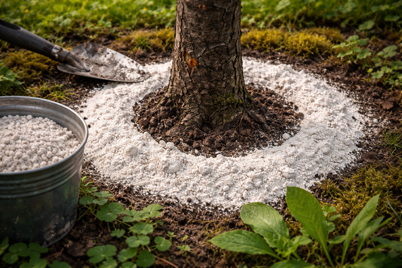 Onko mahdollista ripotella kuivaa kalkkia suoraan kirsikkapuun juurille istutuksen yhteydessä?