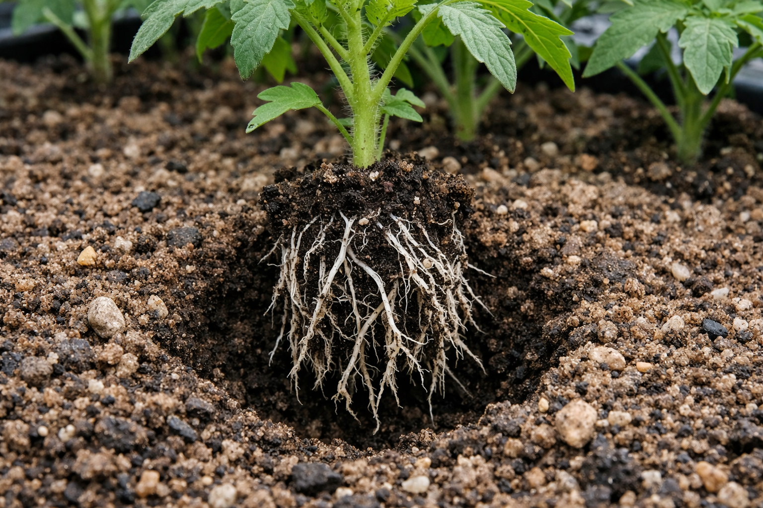 Salainen vivahde piilee keinotekoisessa stressissä: tyhjään maahan joutuessaan tomaattien juuret pakotetaan aktiivisesti kasvamaan leveästi etsiessään ruokaa, mikä muodostaa voimakkaan perustan tulevalle satolle.