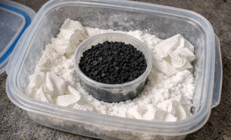 Käytännöllinen vivahde: tavallinen foliokerroksinen turistimatto, joka on sijoitettu taimikasettien alle, heijastaa lämpöä akusta suoraan juurille ja ratkaisee ongelman vuorokaudessa.
