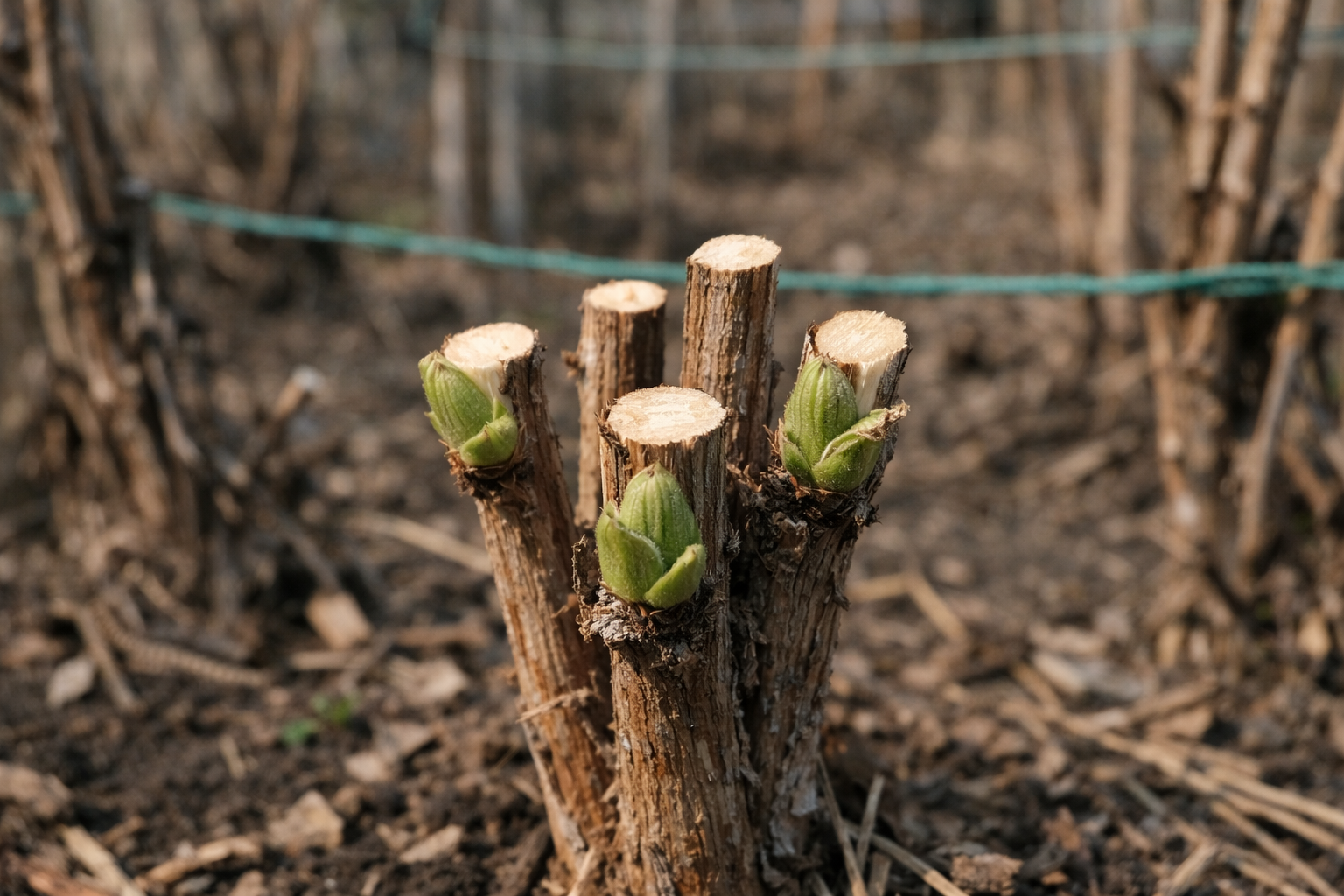 Salainen vivahde: leikkaa talvehtineiden versojen latvat tarkasti ensimmäiseen suureen vihreään silmuun asti, mikä stimuloi sivusuunnassa olevien hedelmäoksien voimakasta kasvua ja suurentaa marjoja merkittävästi.