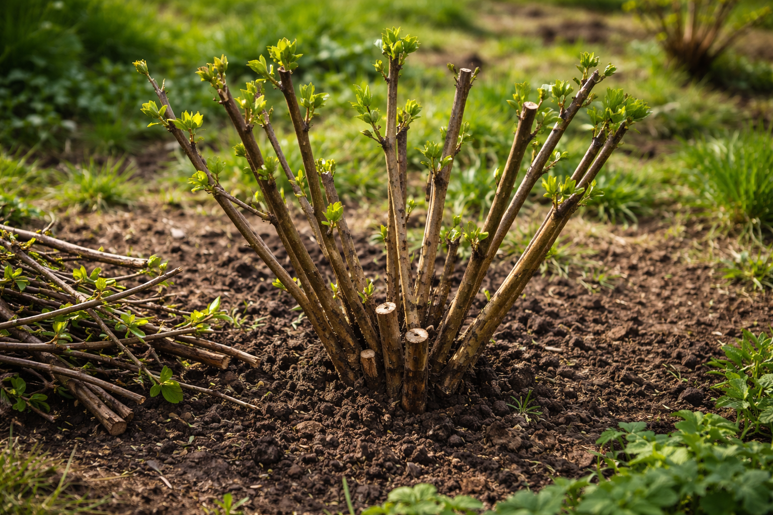 Jätä pensaan muutama vahvin nollaverso vanhojen runkojen tulevaa korvaamista varten