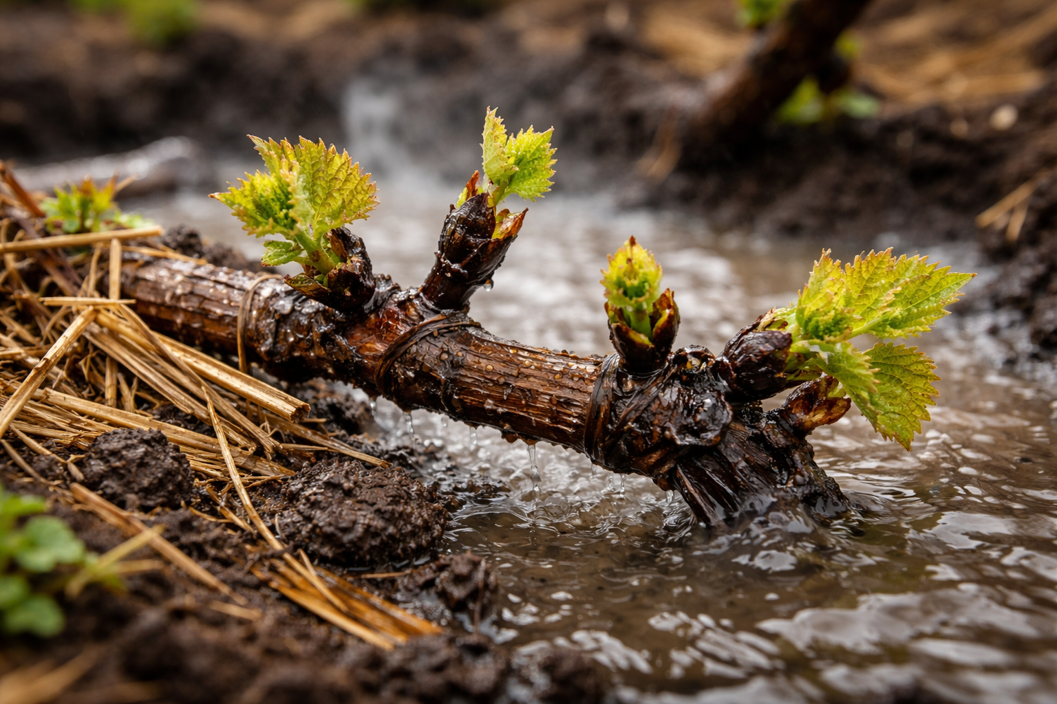 Salainen vivahde piilee illallisessa hienossa kastelussa aivan lepäävän viiniköynnöksen päällä juuri ennen pakkasta, koska oksille jäätyvä vesi luovuttaa puulle piilevää lämpöä ja suojaa luotettavasti hedelmäsilmuja kuolemasta.