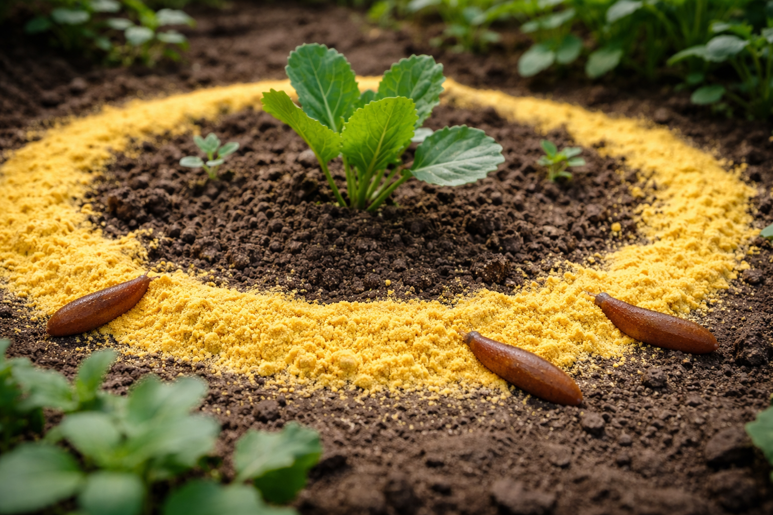 Kuivamenetelmä on ihanteellinen yksittäisten viljelykasvien suojaamiseen. Olen hajallaan sinappijauhetta leveinä raidoina (noin 5–7 cm) penkkien tai yksittäisten varsien ympärillä.