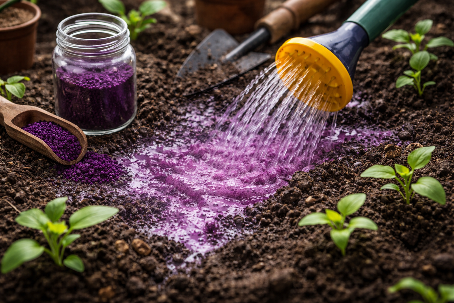 Salainen vivahde henkilökohtaisesta harjoittelusta: älä koskaan liuota kiteitä suoraan puutarhan kastelukannuun. Valmista ensin pieneen lasipurkkiin täyteläinen tumma varastoliuos, sekoita kaikki jyvät huolellisesti ja lisää se sitten tipoittain vesiämpäriin kasteluun varmistaaksesi, ettet polta kasvien herkkiä juuria.