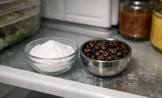 Ripottele pinta reilusti ruokasoodaa ja anna yön yli imeä kosteutta.