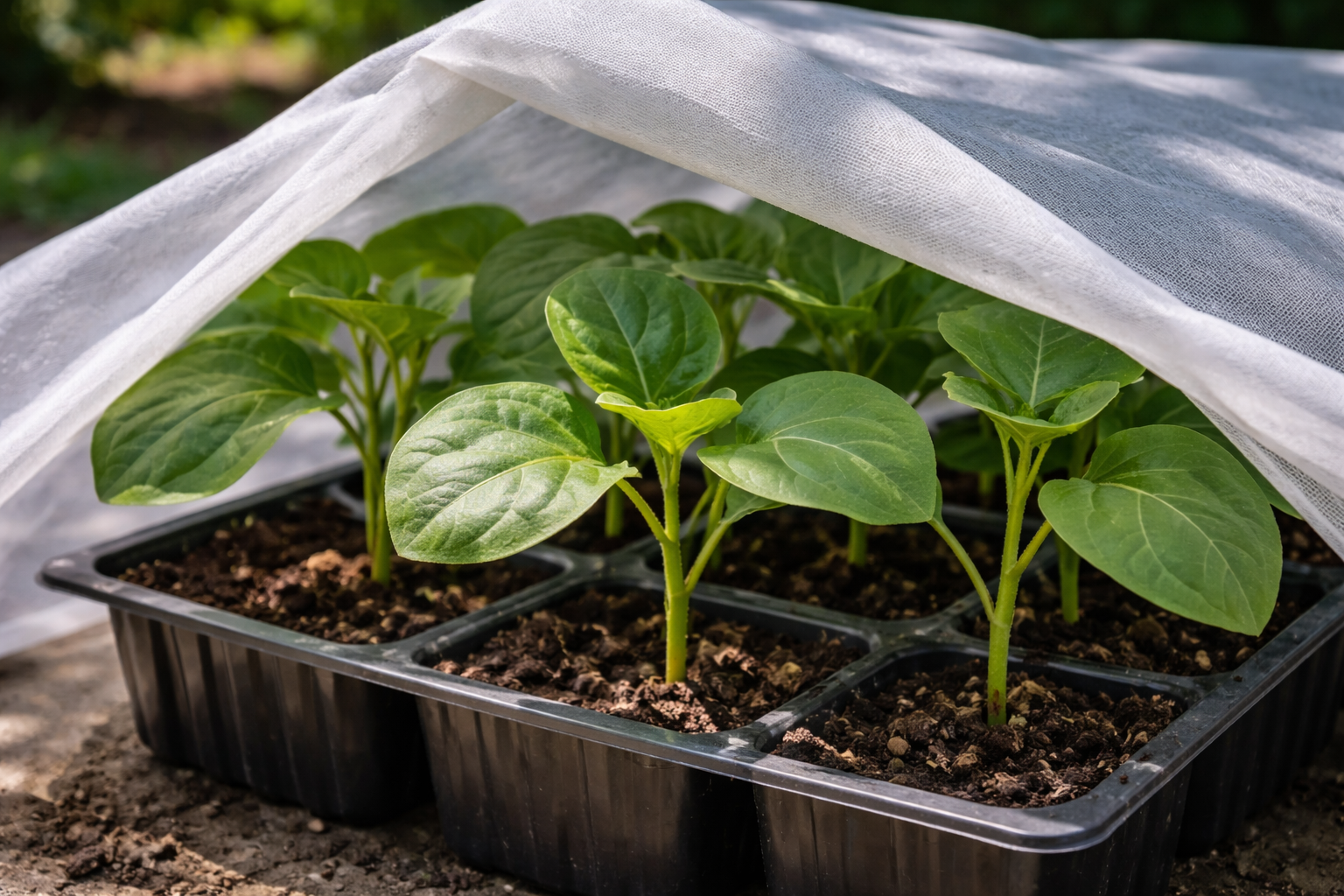 Ohut valkoinen spunbond, jonka tiheys on 17-30 grammaa neliömetrillä, luo ihanteellisen suojaavan hajavalon.