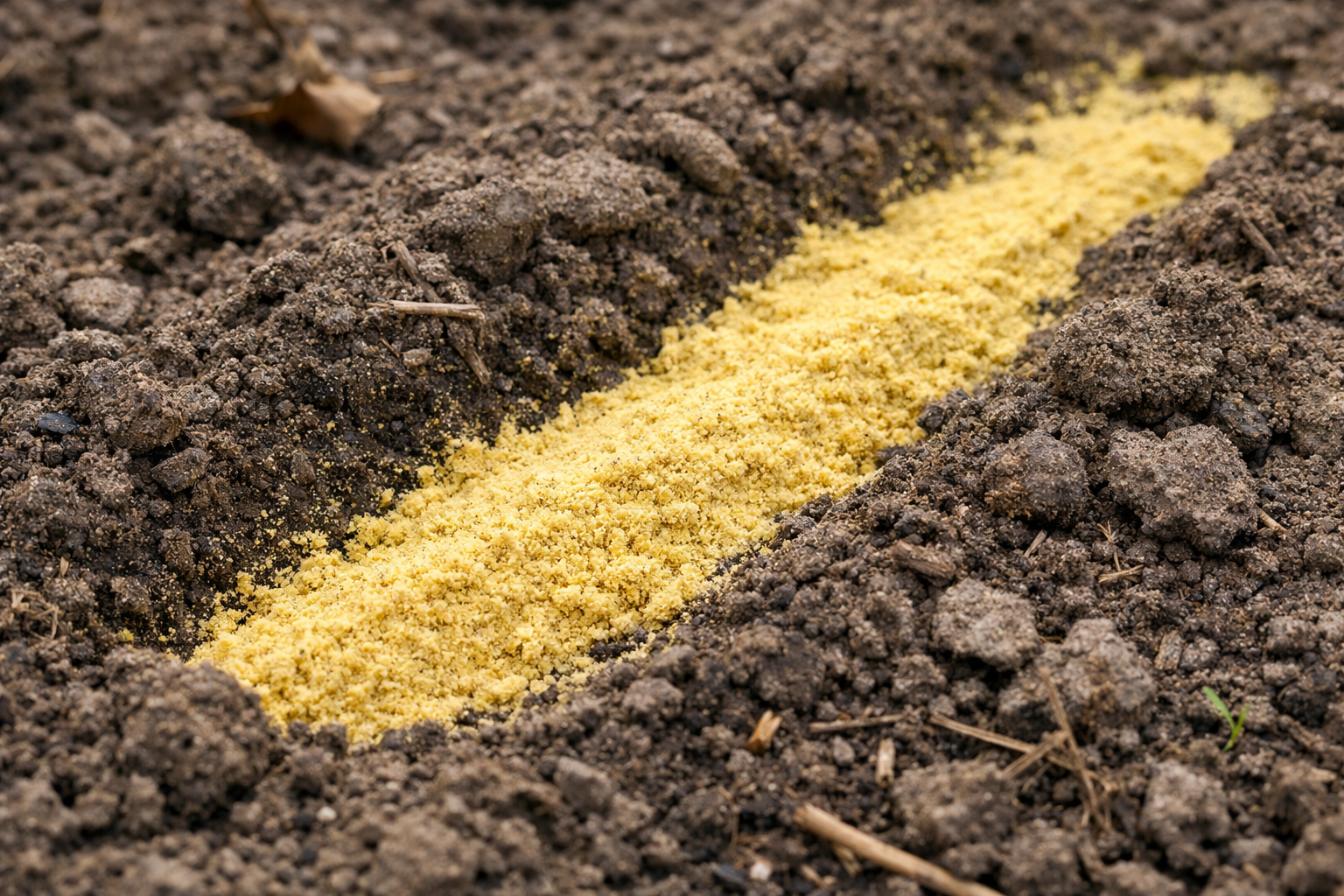 Sinappijauhe kaadetaan suoraan reikiin istutuksen aikana.