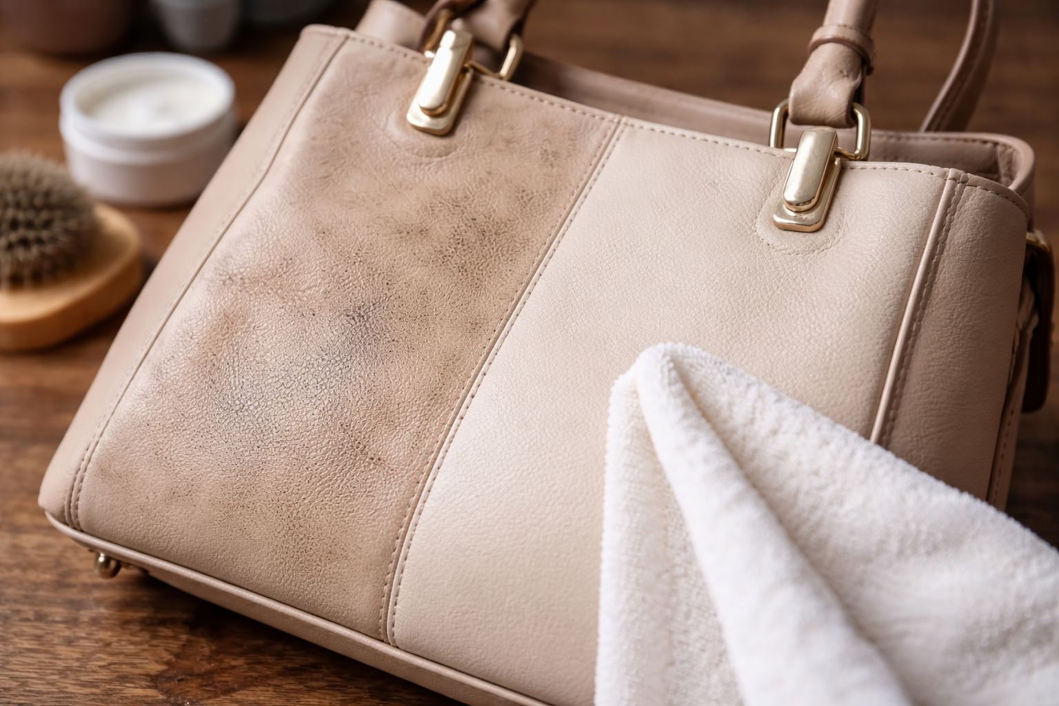 Aitoa nahkaa ja korkealaatuiset korvikkeet eivät siedä runsaasti kosteutta, joten prosessin tulee olla mahdollisimman kuiva ja herkkä. Tavalliset kosteuspyyhkeet jättävät usein valkoisia tahroja, joista on vaikea päästä eroon.